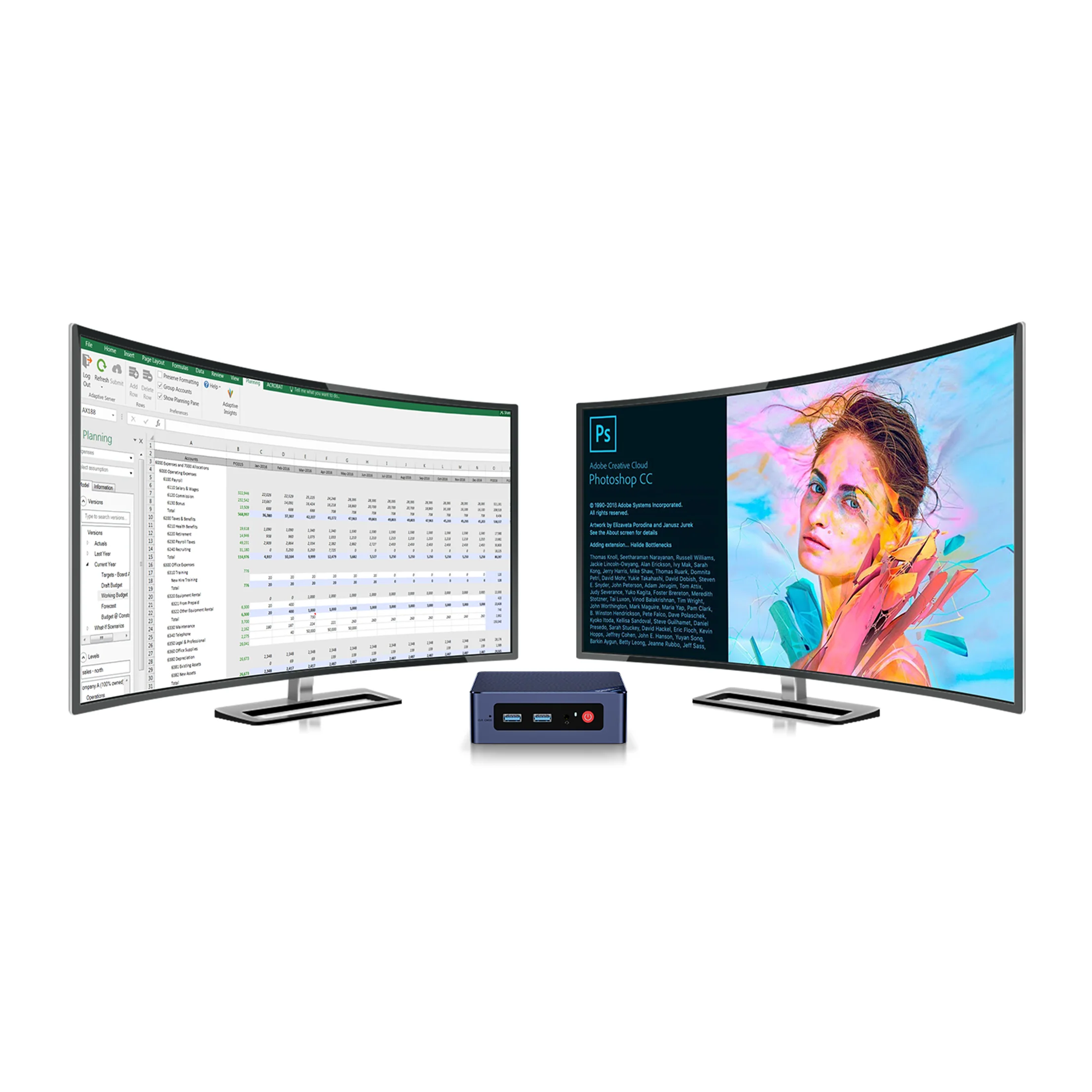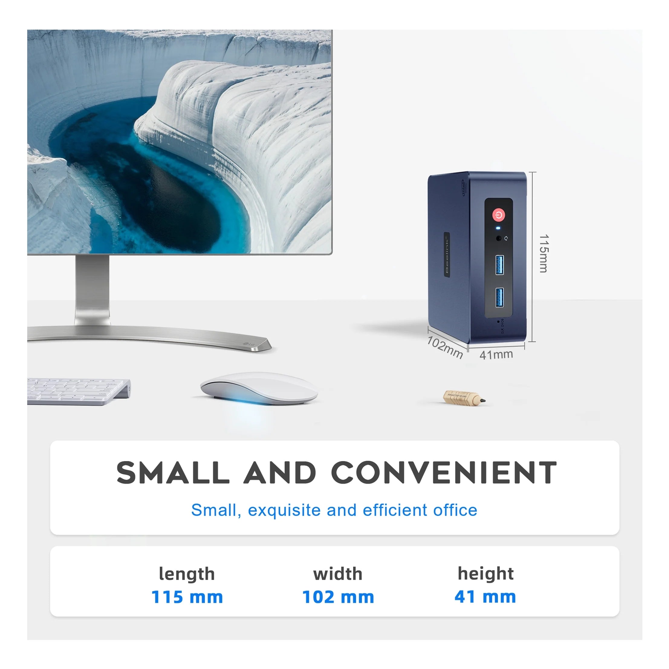 (2) Flexible Speichererweiterung: Dieser Mini-PC verfügt über 8GB DDR4 RAM und 128GB M.2 SSD, erweiterbar auf 2TB M.2 SSD (nicht inklusive) plus 2,5" HDD (bis zu 2TB). Das Dual-Speicher-Design kombiniert Geschwindigkeit und Kapazität für alle Arbeits- und Unterhaltungsanwendungen.