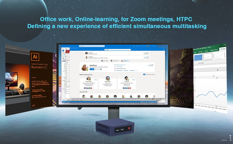 Beelink Mini-Computer sind geeignet für Büro, Zoom-Meetings, Unterricht, Heimunterhaltung, Werbemaschinen, den Betrieb eines Kiosks und andere Szenarien.