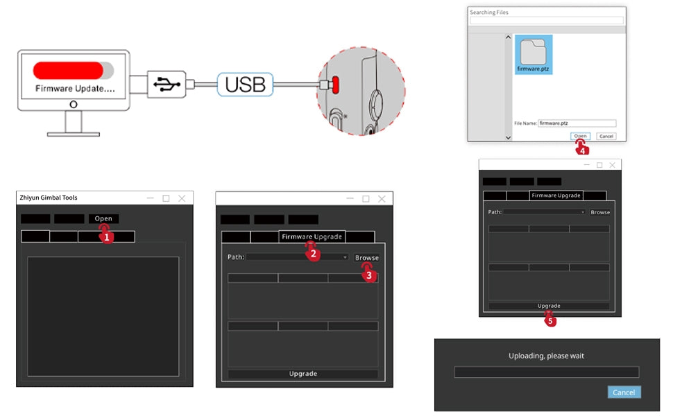 Der Crane M2S unterstützt KEINE "ZY Cami"-APP-Steuerung. Sie können ihn jedoch über das Gimbal-Bedienfeld steuern, nachdem das Steuerkabel korrekt angeschlossen wurde. Für spezifische, unterstützte Modelle der verschiedenen Steuerungsfunktionen, wenden Sie sich bitte an den Verkäufer, um den Kompatibilitätsleitfaden zu erhalten.