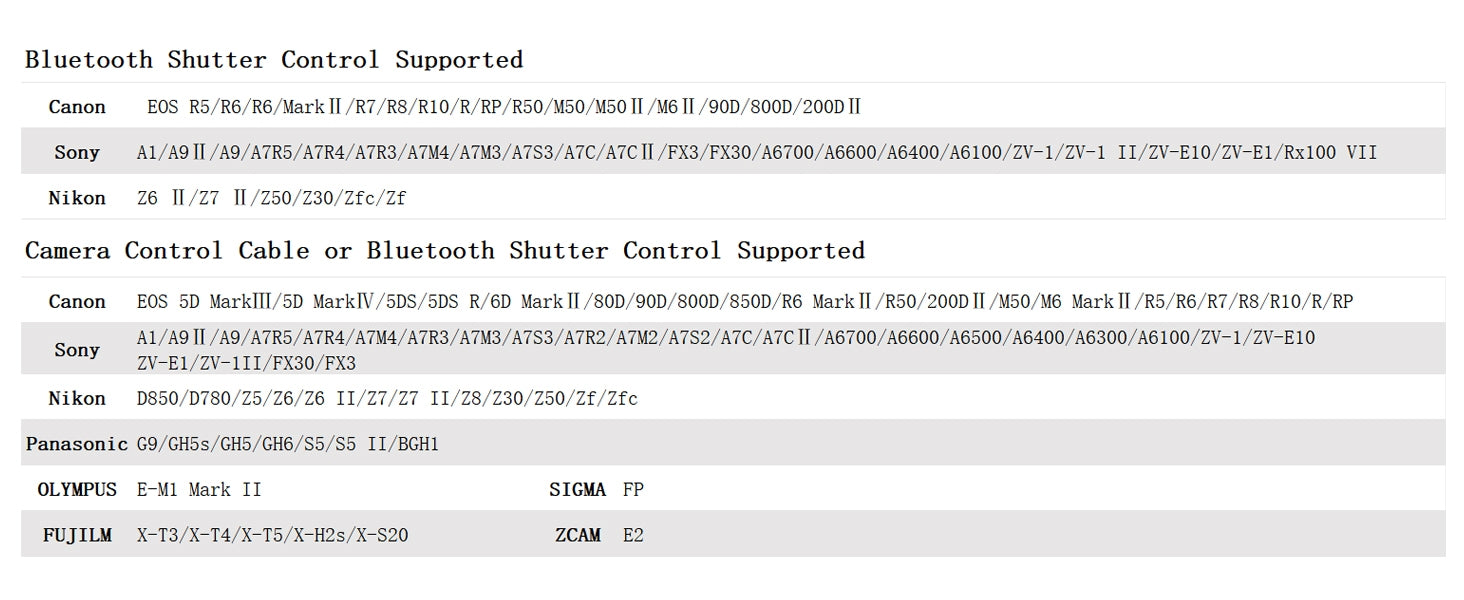 (1)Maximale Kompatibilität – Unterstützt die meisten DSLR- und spiegellosen Kameras wie Sony A7 IV, Canon R5, Nikon Z6, Panasonic S5 – inkl. Objektive bis 3 kg.